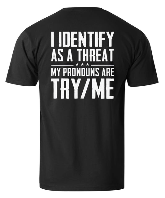 I IDentify As A Threat My Pronouns Are Try Me Men's T-shirt
