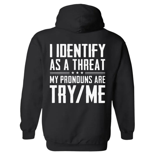 I IDentify As A Threat My Pronouns Are Try Me Unisex Hoodie